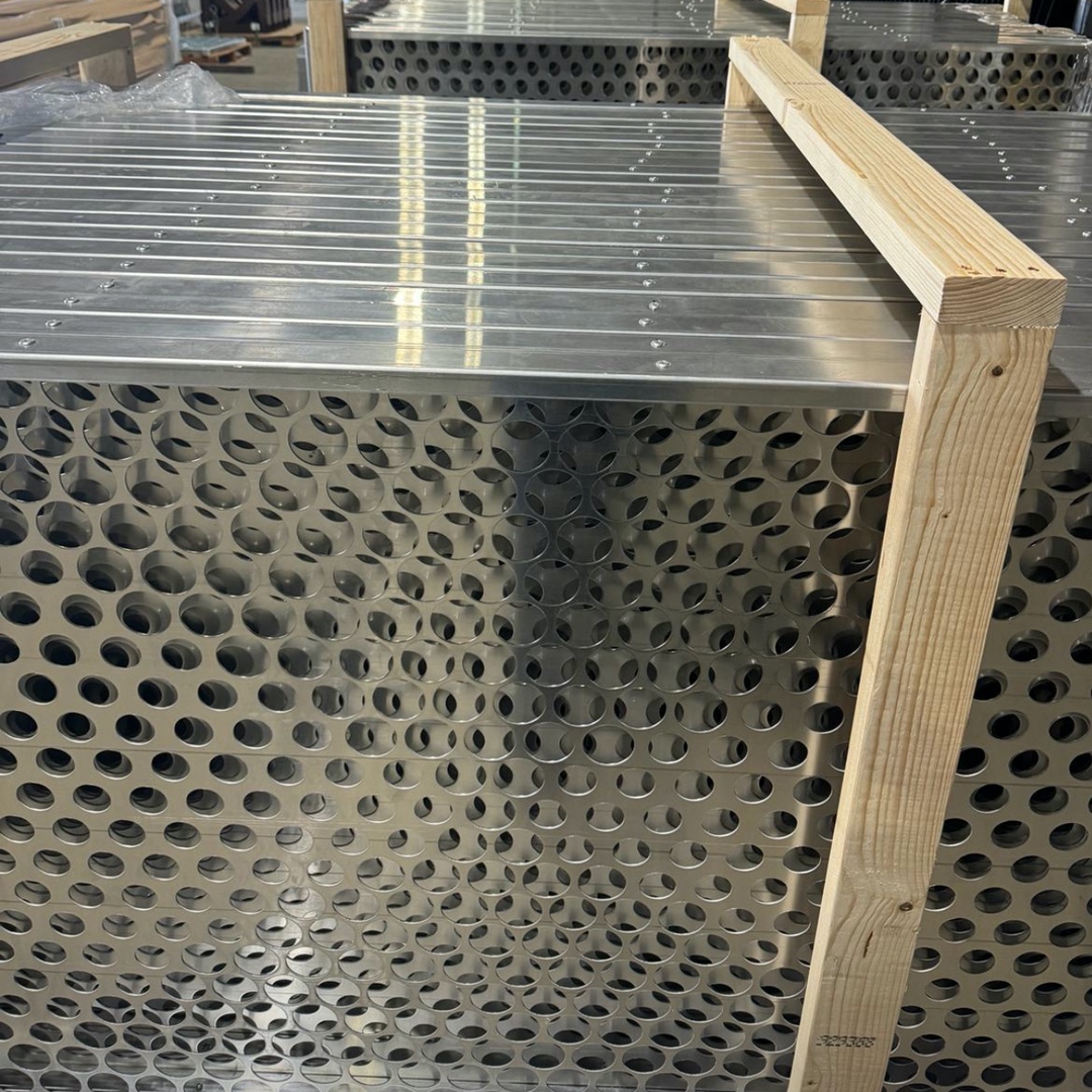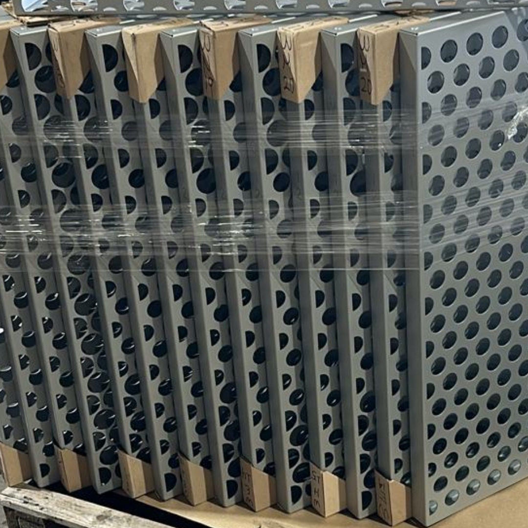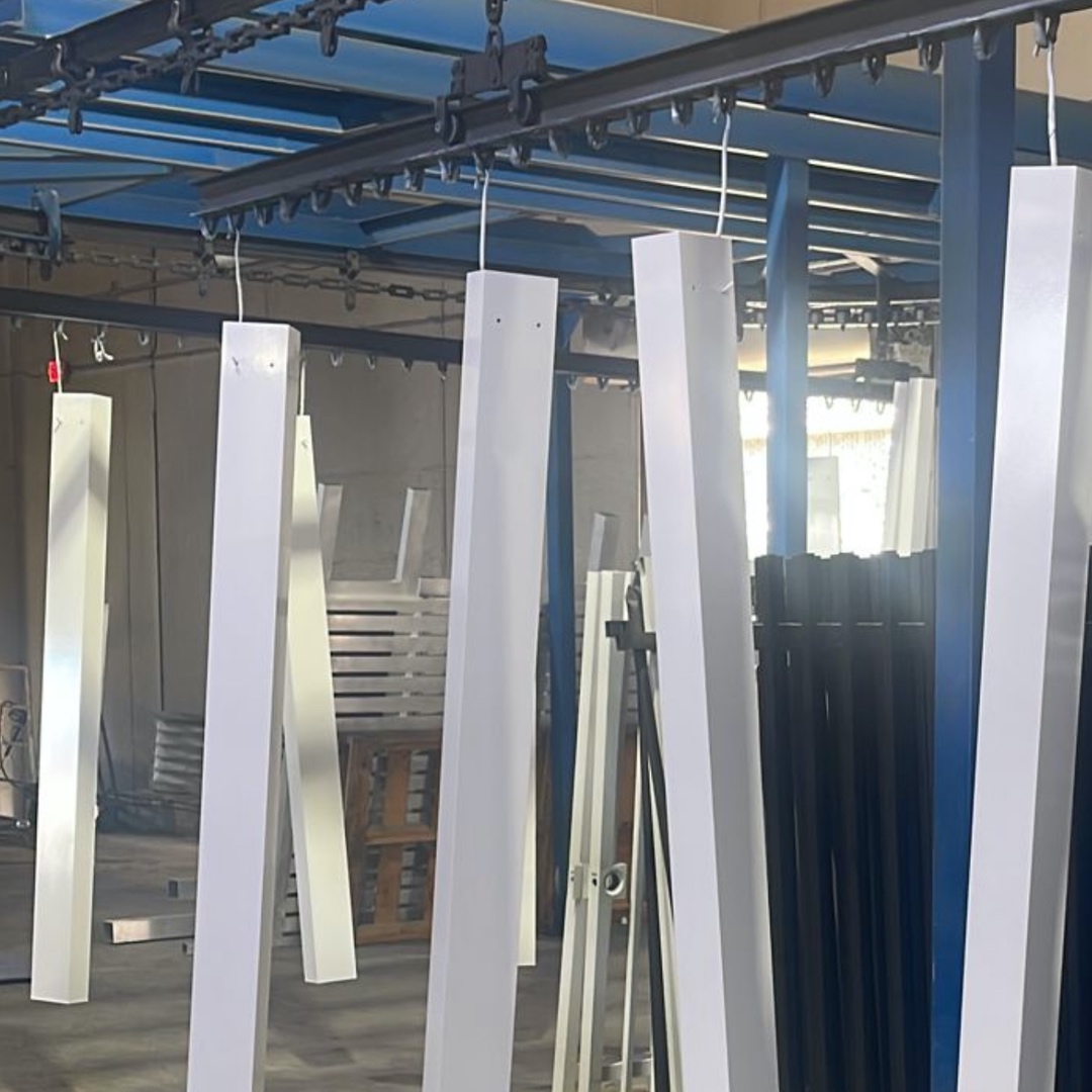 These metal structures were carefully treated and painted at our facility, ensuring a high-quality finish suitable for architectural applications. Designed for use in a building façade, the coating we applied provides excellent durability and protection against environmental elements. Our process guarantees a sleek and long-lasting appearance, ideal for both functional and aesthetic purposes in exterior structures.